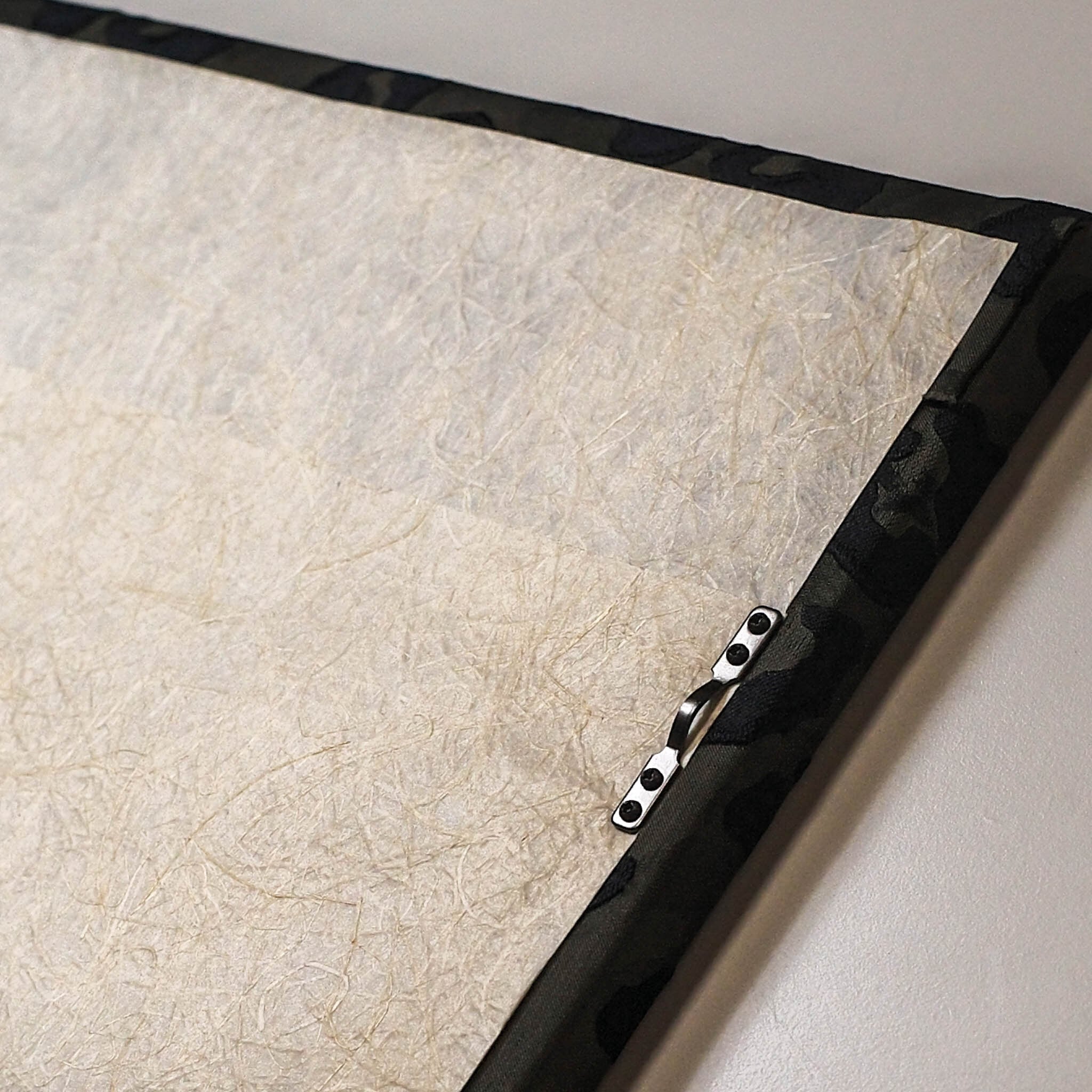 背面に使用している和紙は、江戸時代から続く和紙問屋 "小津和紙" で製作された高品質な和紙です。調湿/防虫などに優れ、アートの保管にも適した素材を採用いたしました。