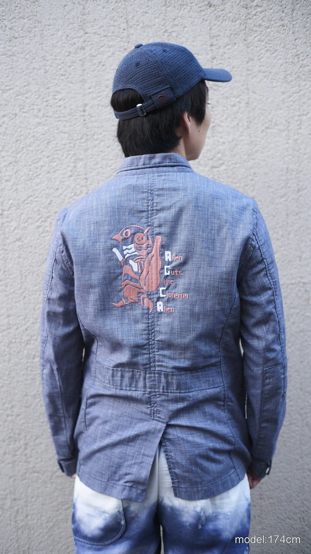 メジャーブランドの良質なジャケットをベースに、ウルトラセブンの人気キャラクター「ガッツ星人」のアートを刺繍しました。ポケットや肘パットの細かいデザイン、上質な素材を使用したボタンなどは愛着を持たせます。