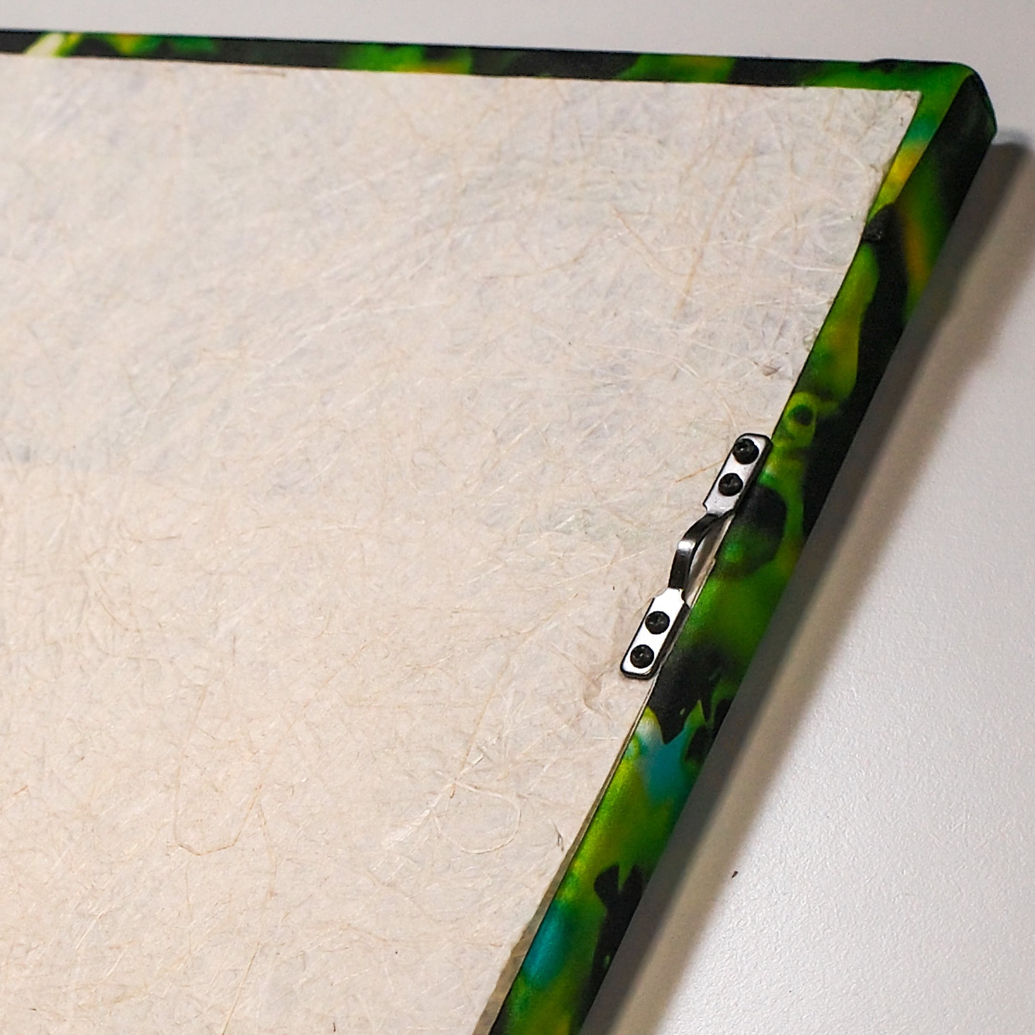 背面に使用している和紙は、江戸時代から続く和紙問屋 "小津和紙" で製作された高品質な和紙です。調湿/防虫などに優れ、アートの保管にも適した素材を採用いたしました。