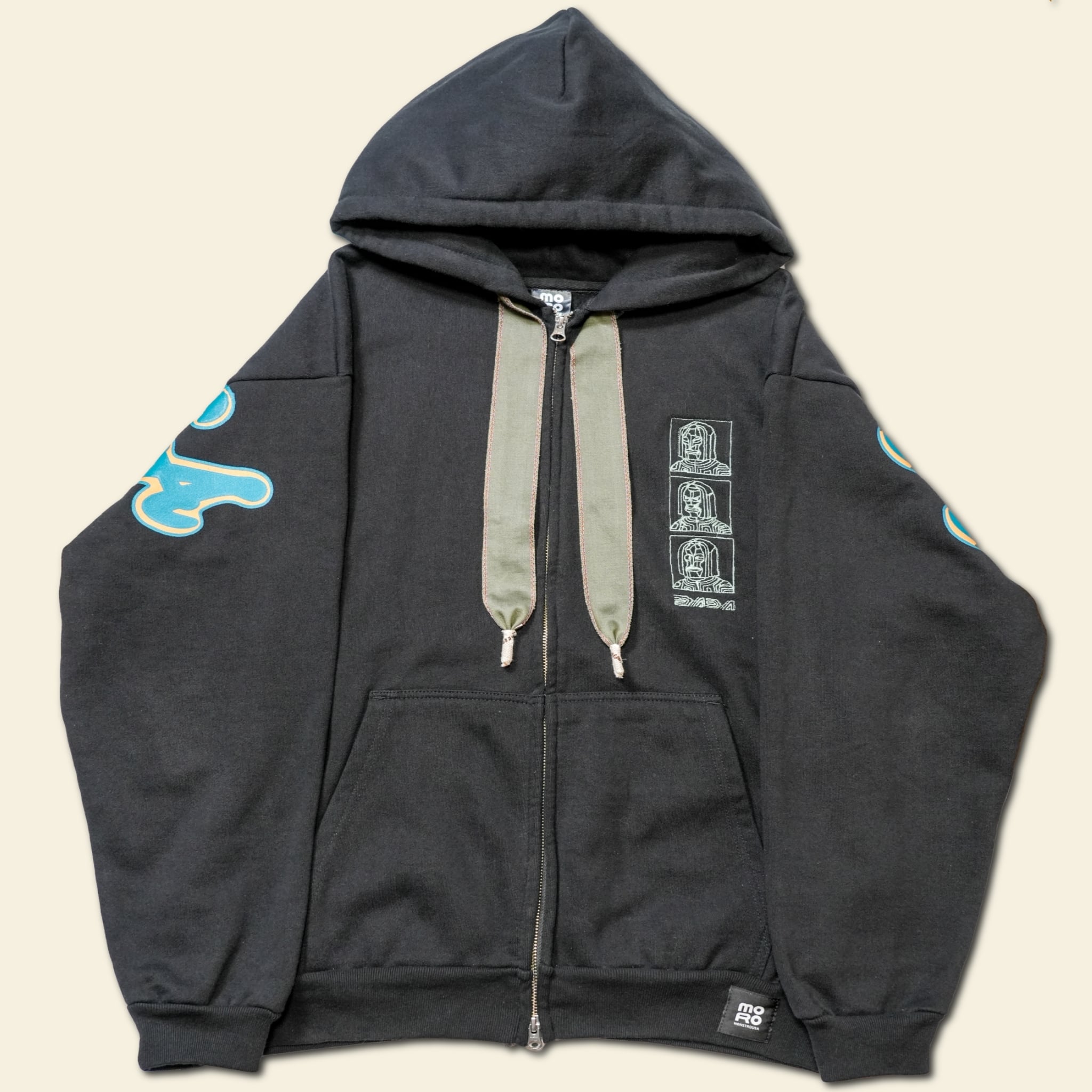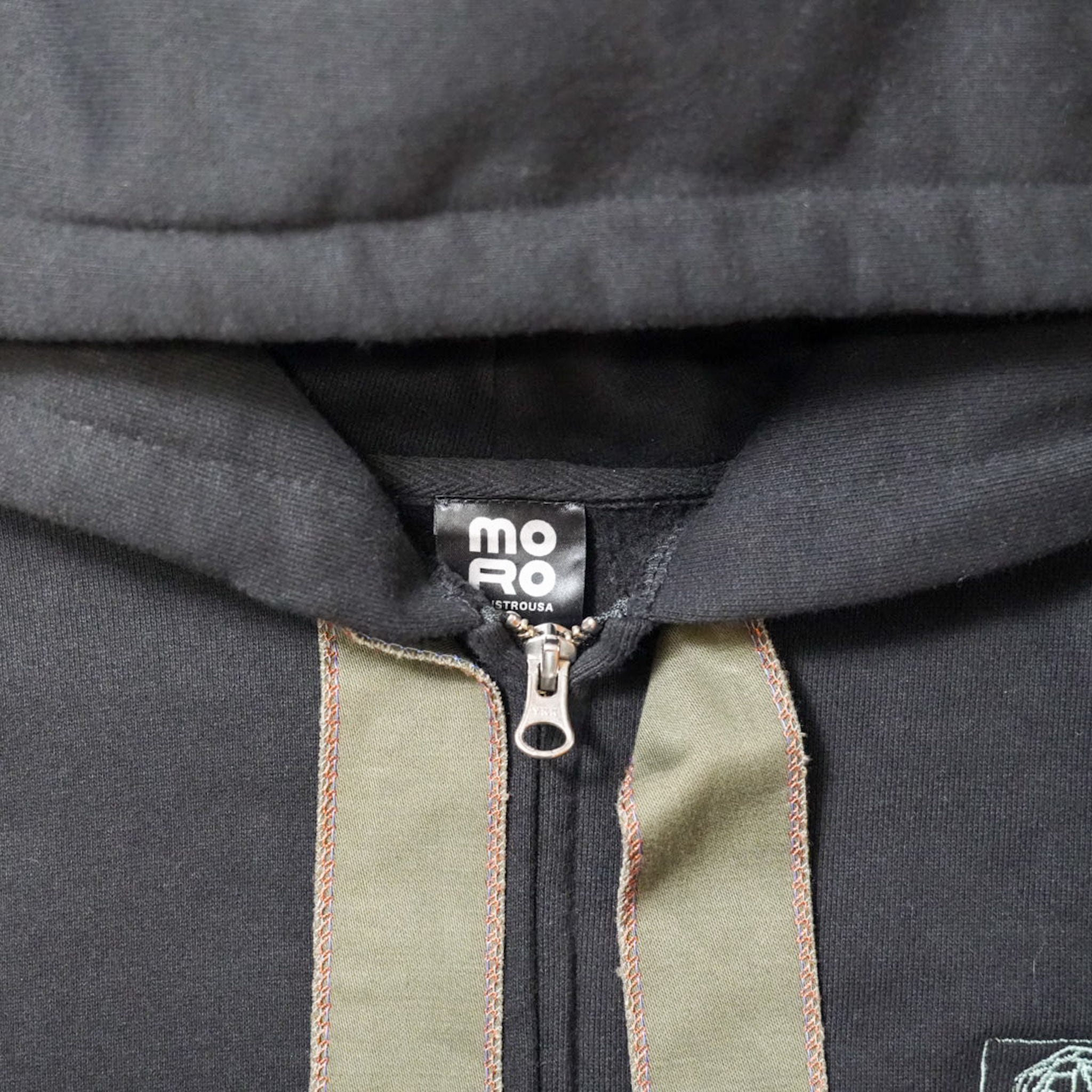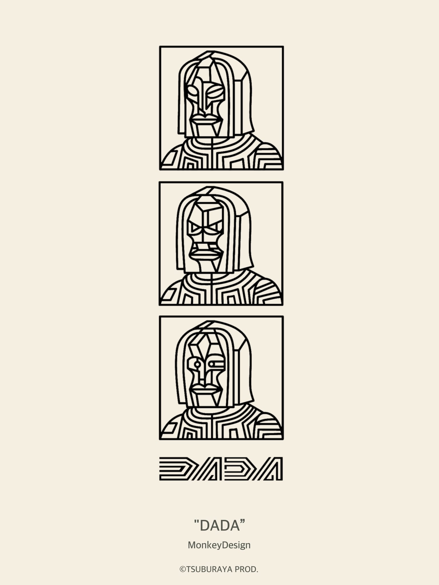 MONSTROUSAのオリジナルアイテムArt TAPE Hoodieをベースに、三面怪人ダダのアートを刺繍しました。職人が手作りで仕上げた一点物のテープは唯一無二の存在感を演出し、馴染みの良い糸色で刺繍されたポリゴン化されたダダのアートが魅力的です。