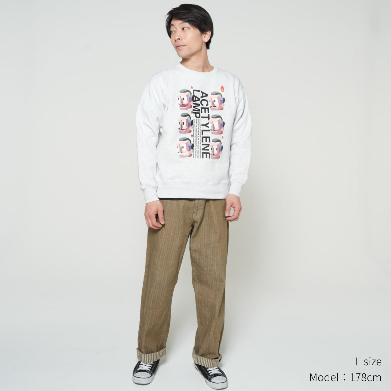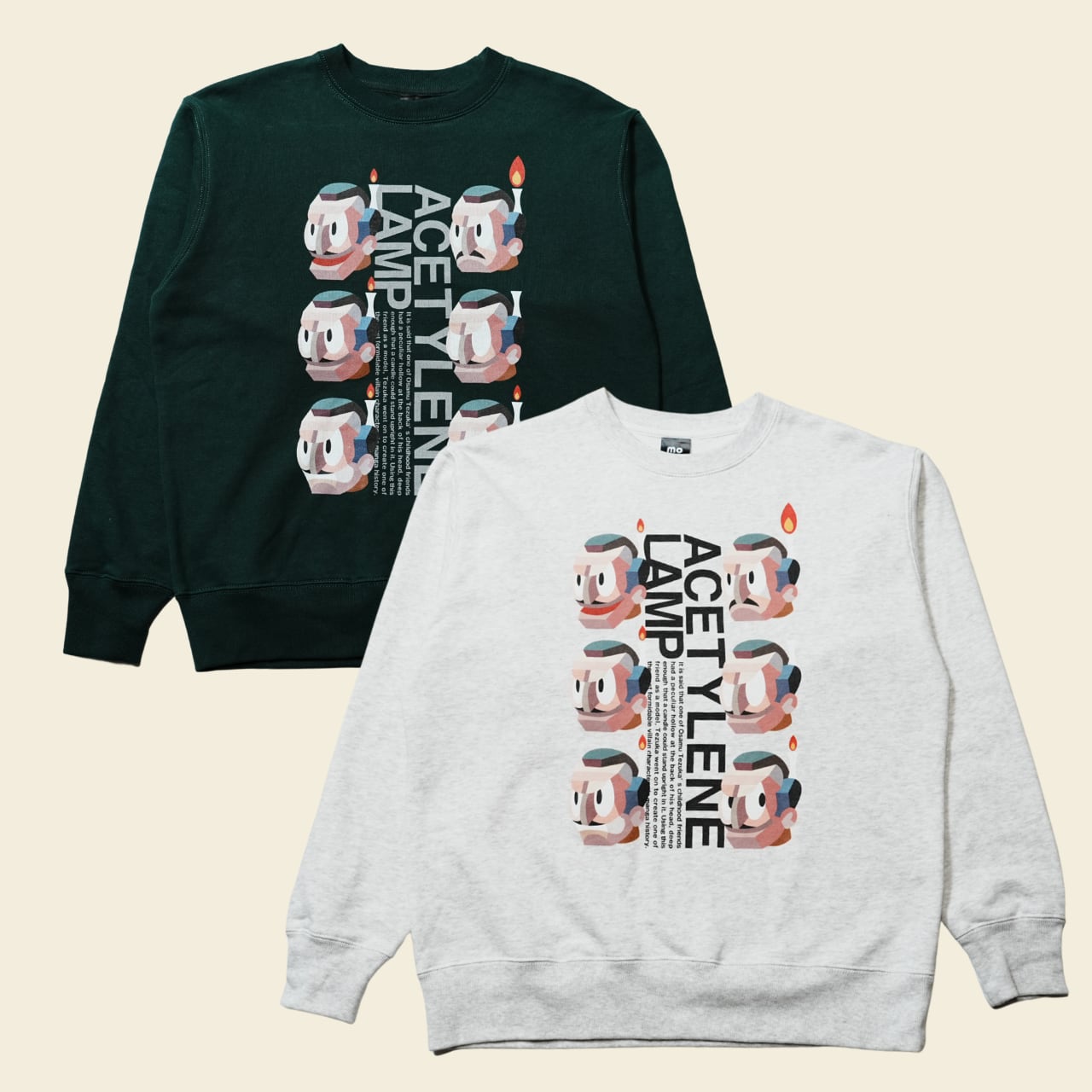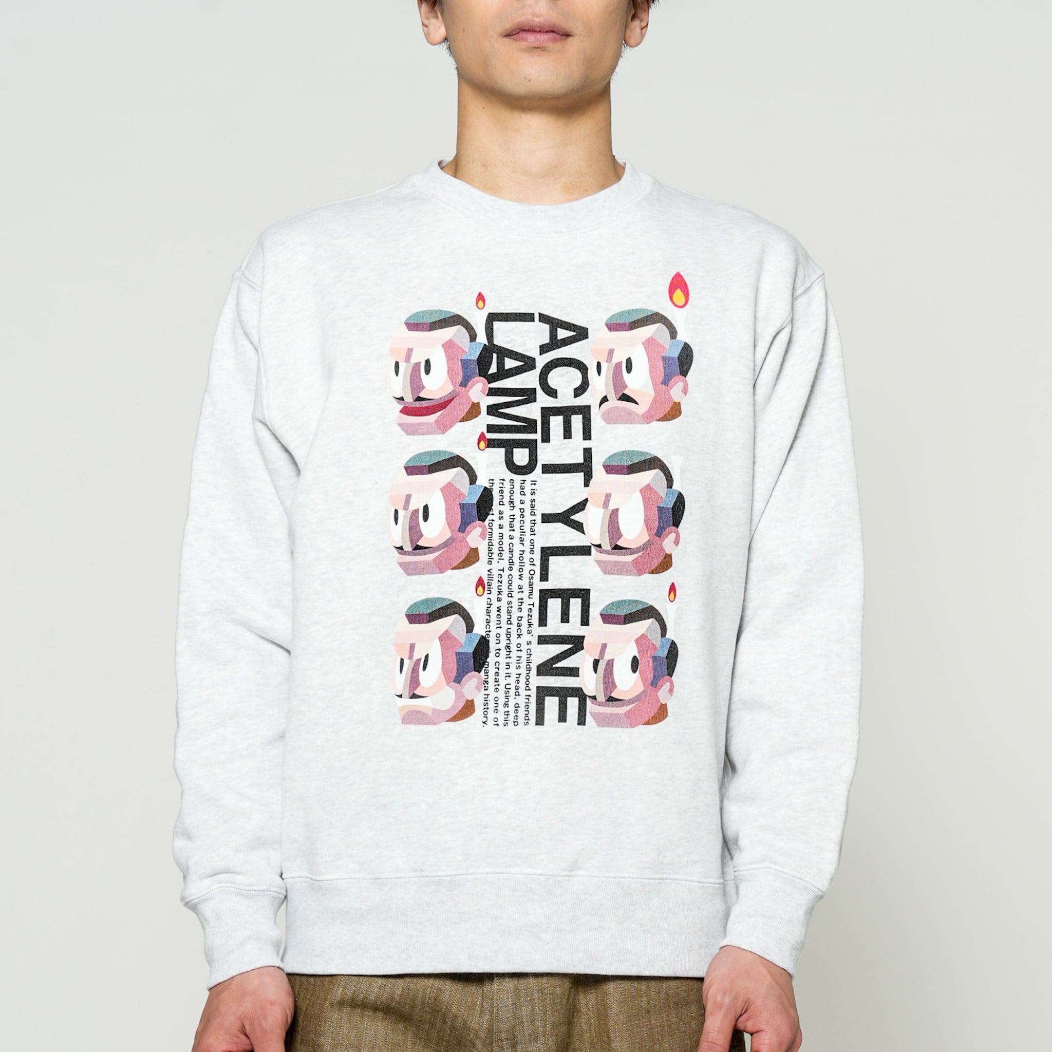 厚手で硬崩れしずらい12.7onzのトレーナーをベースに、手塚治虫作品の名キャラクター「アセチレンランプ」のアートをプリントしました。生地は厚手ながらも、着回ししやすいパイル素材。アートのテキスト部にはキャラクター誕生秘話もこめられた、細部までこだわりの詰まった1着です。