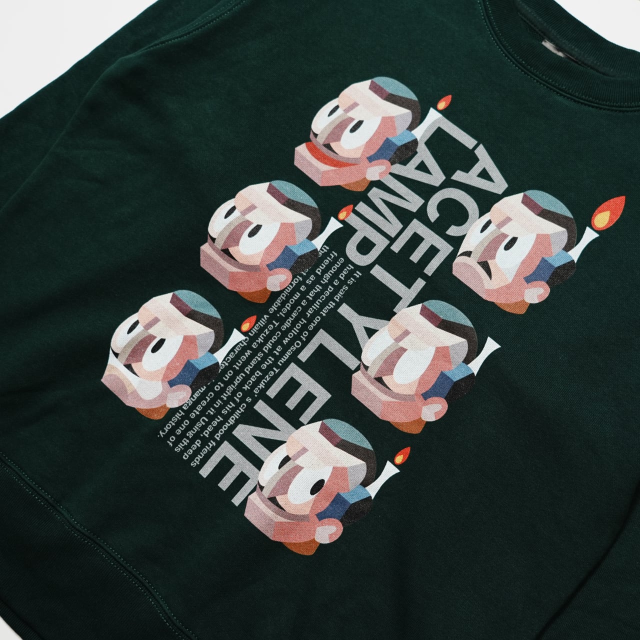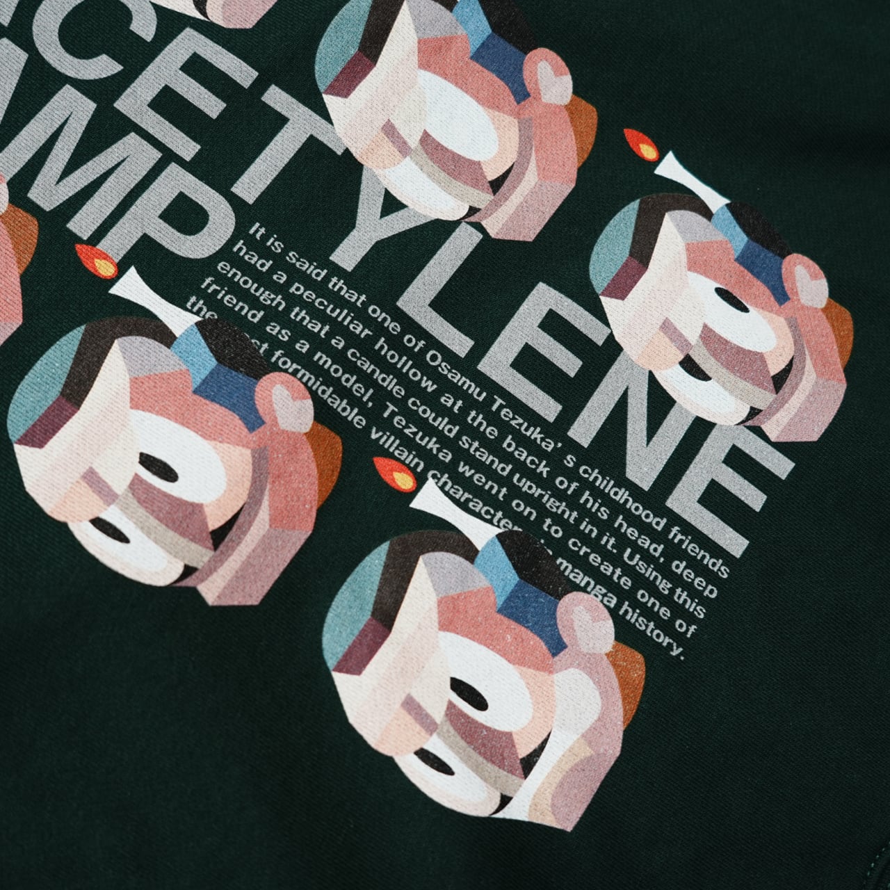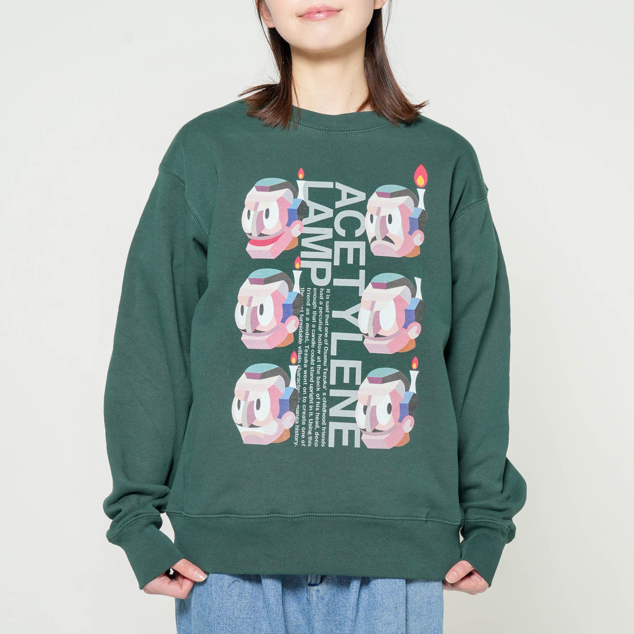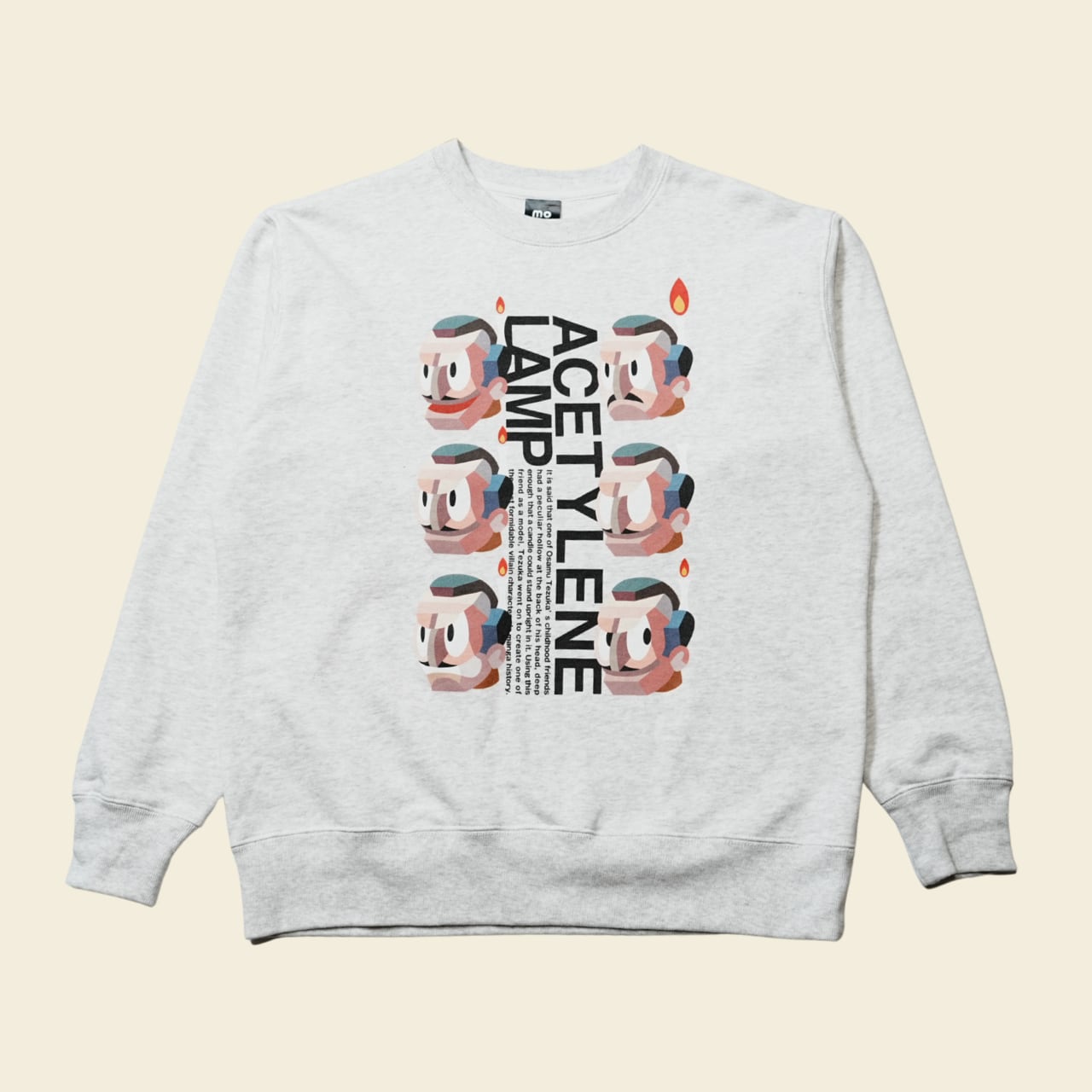 厚手で硬崩れしずらい12.7onzのトレーナーをベースに、手塚治虫作品の名キャラクター「アセチレンランプ」のアートをプリントしました。生地は厚手ながらも、着回ししやすいパイル素材。アートのテキスト部にはキャラクター誕生秘話もこめられた、細部までこだわりの詰まった1着です。