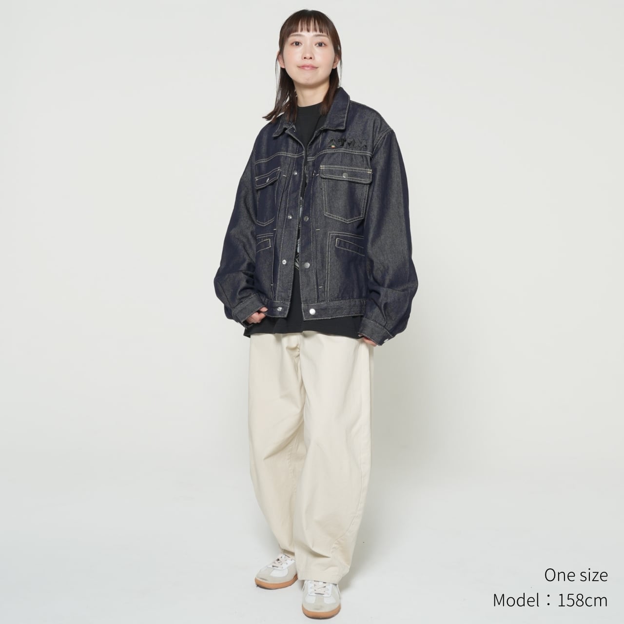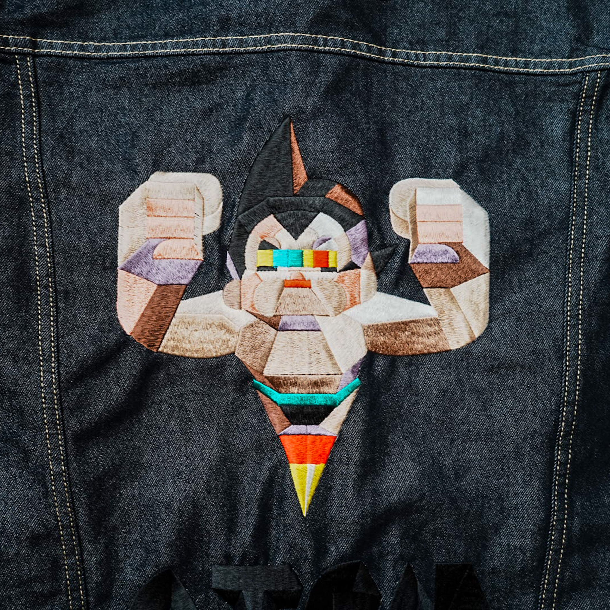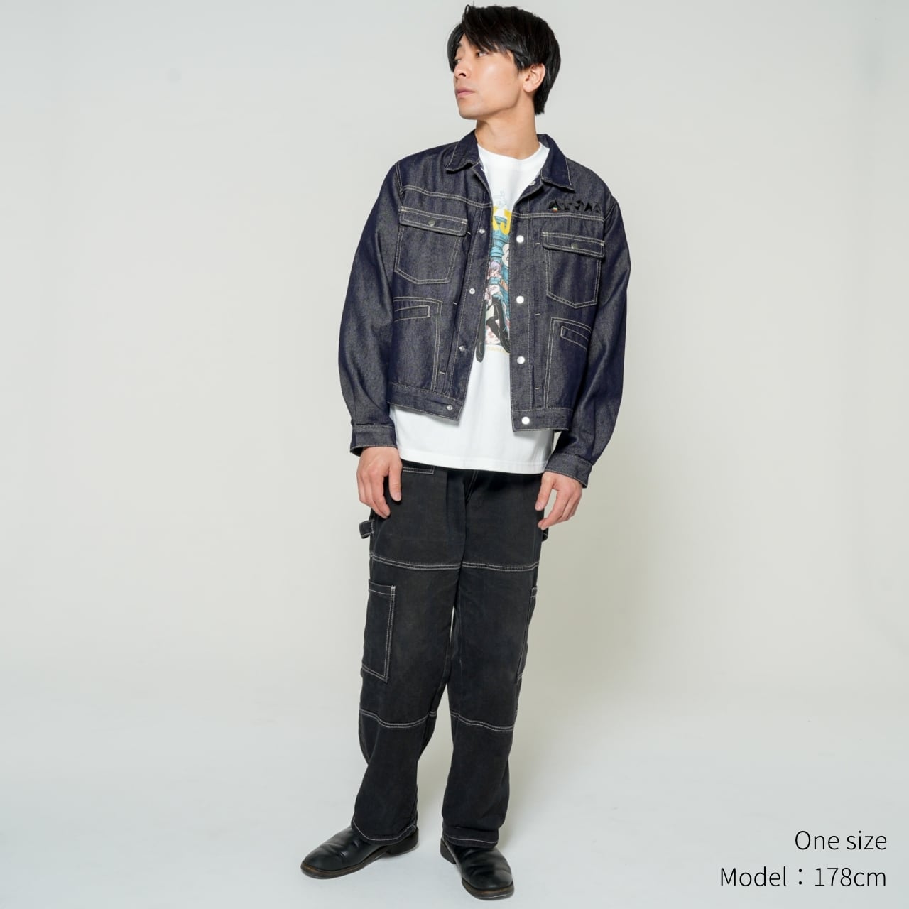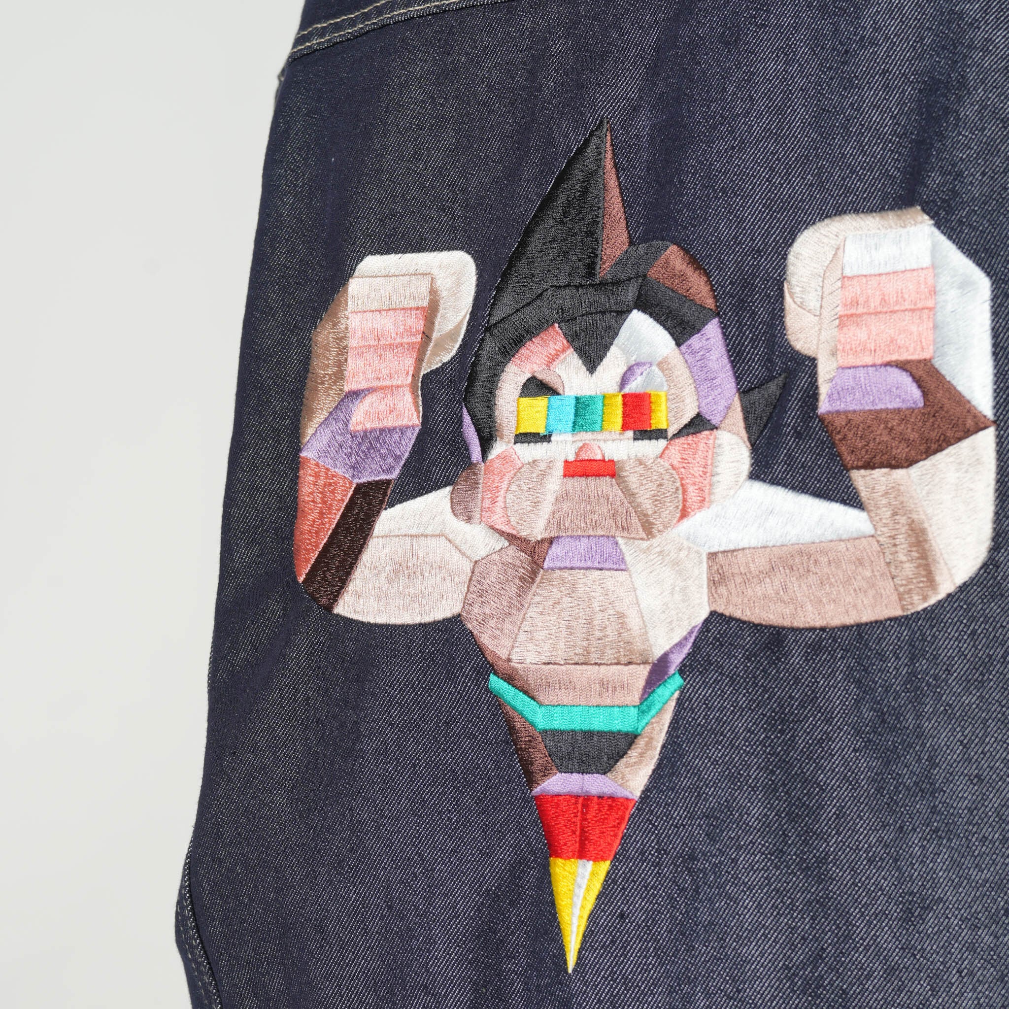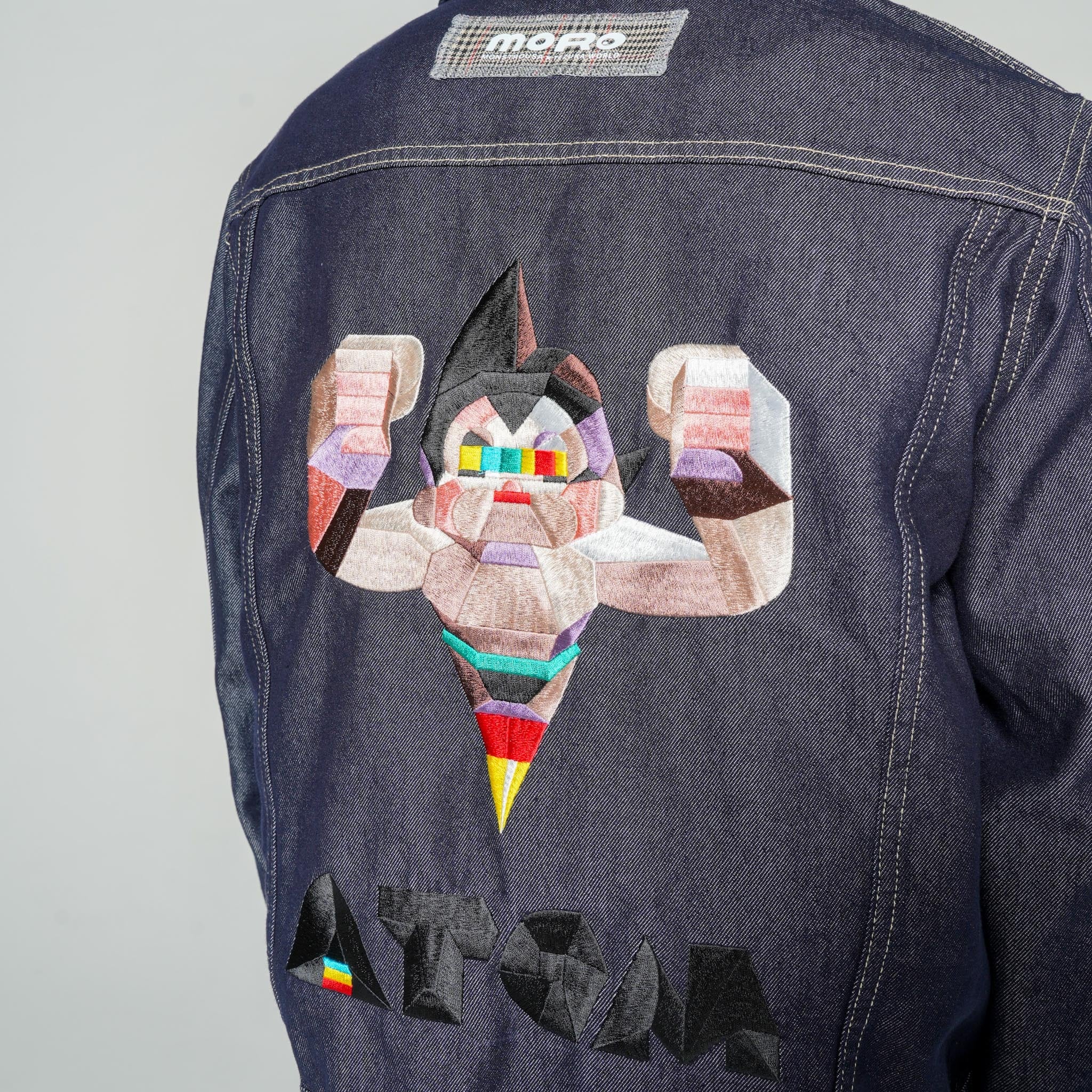 BOXシルエットのデニムJKTは男女問わずカジュアルに着こなせる1着です。フロントのデザイン性や光沢感がある生地、深いグレーブルーの色味は高級感を演出します。背中に刺繍されたMonkeyDesignが手がけた「鉄腕アトム」の刺繍アートは圧巻の迫力です。1950年代に生まれた日本カルチャーの金字塔作品が、全く新しい解釈で現代に蘇ったアパレルアートです。