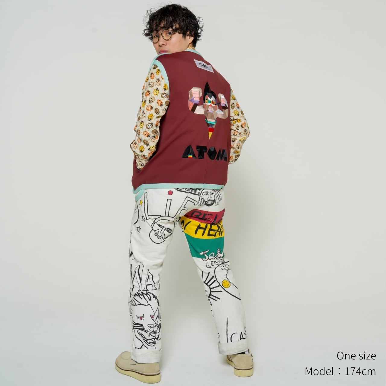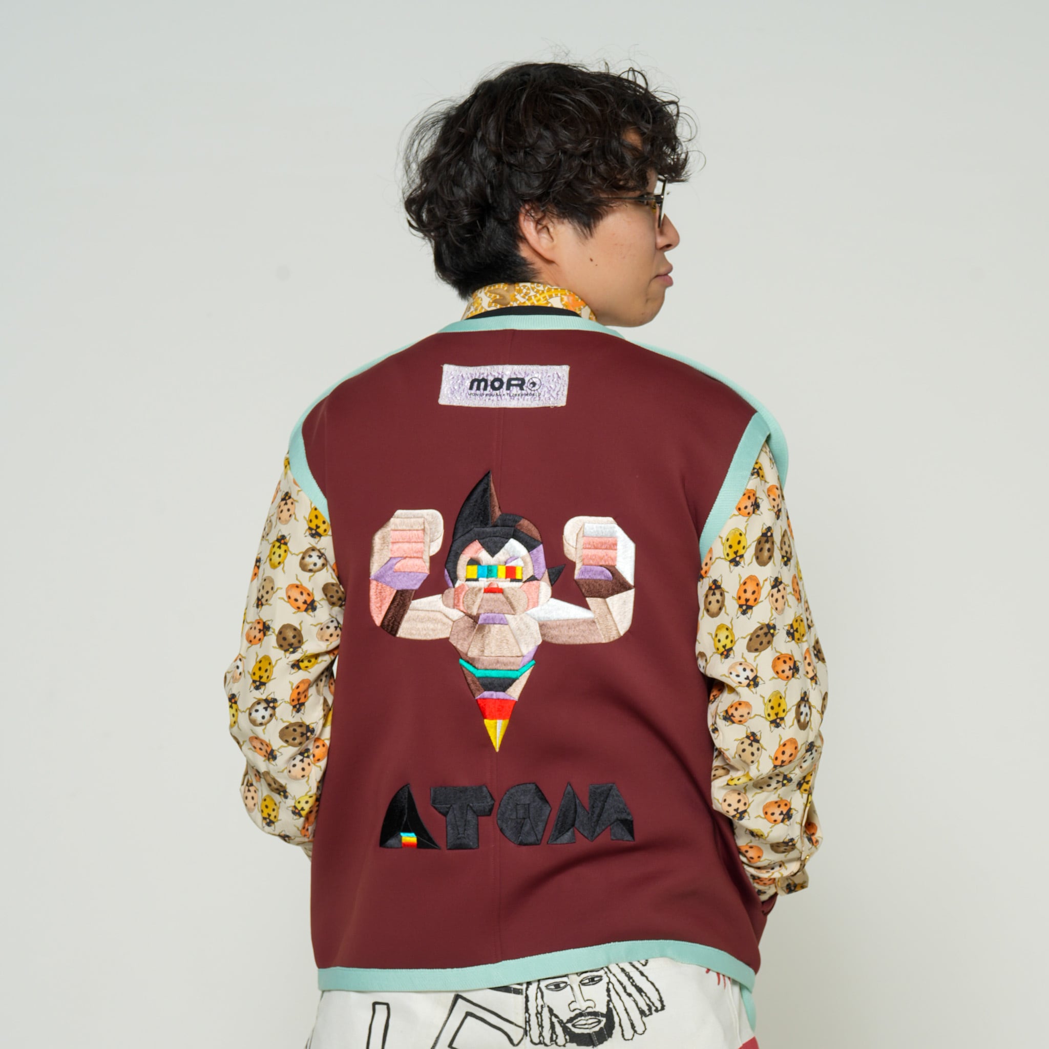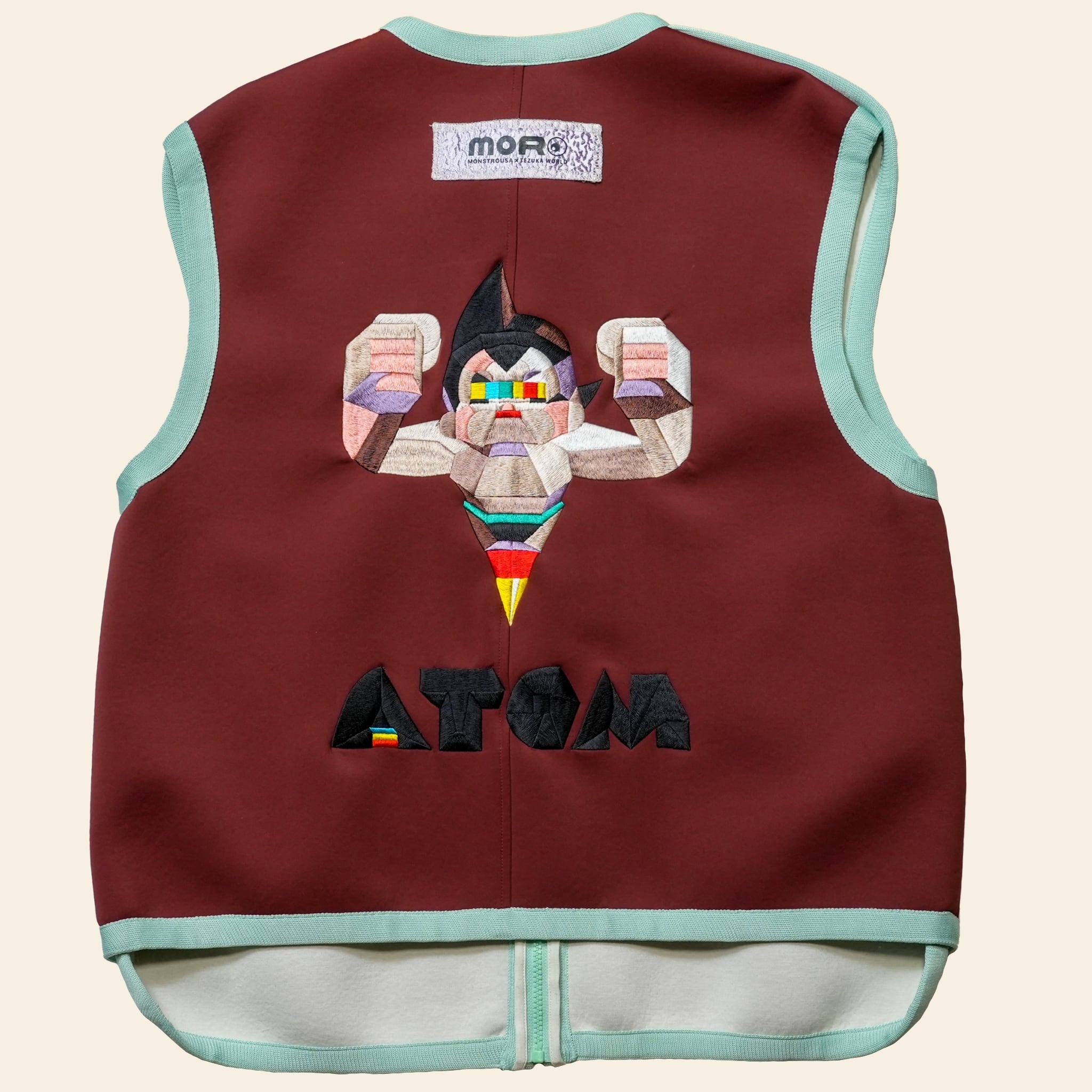 まるで近未来から襲来したかのような捉え所のないルーズサイドのベストはハイブランドの高級ボディをベースに仕立てた一点物です。背中に刺繍されたMonkeyDesignが手がけた「鉄腕アトム」の刺繍アートは圧巻の迫力です。1950年代に生まれた日本カルチャーの金字塔作品が、全く新しい解釈で現代に蘇ったアートアパレルです。