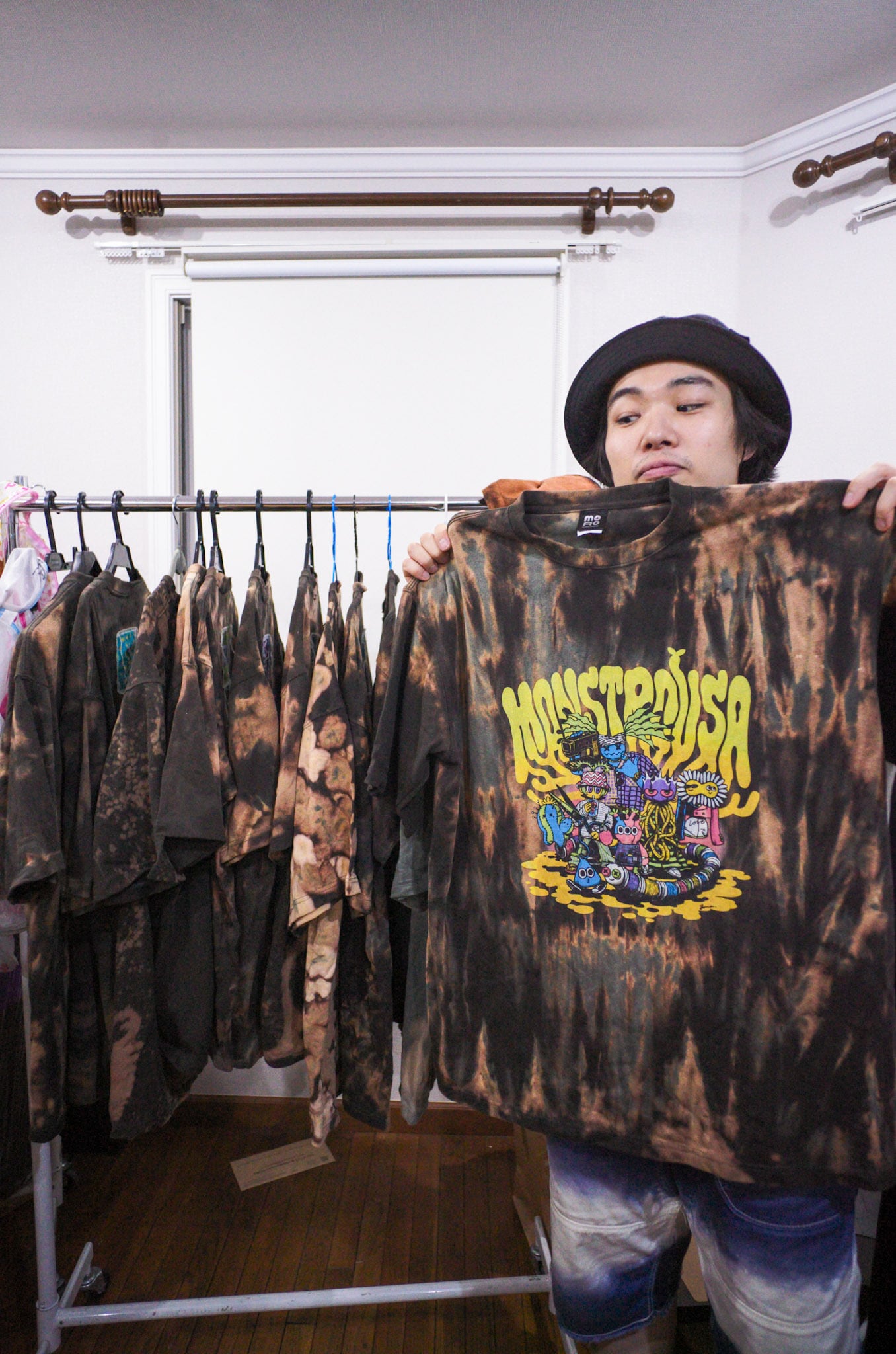 MONSTROUSAのオリジナルTシャツに、デザイナーの岩男海史が1着ずつブリーチ加工を加えた一点物アイテムです。9.1オンスの厚手素材Tシャツは、幅広い季節にご愛用いただけます。