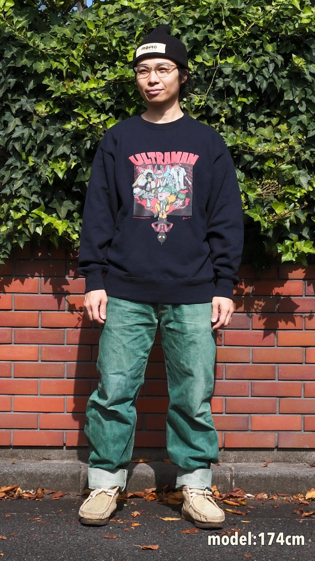 12.7onzのふっくらした厚手スウェット素材のトレーナーに、ウルトラマンの怪獣たちが戯れるアートをほどこしました。背面のアートタグは衣裳屋ブランドならではのスペシャルなポイントです。