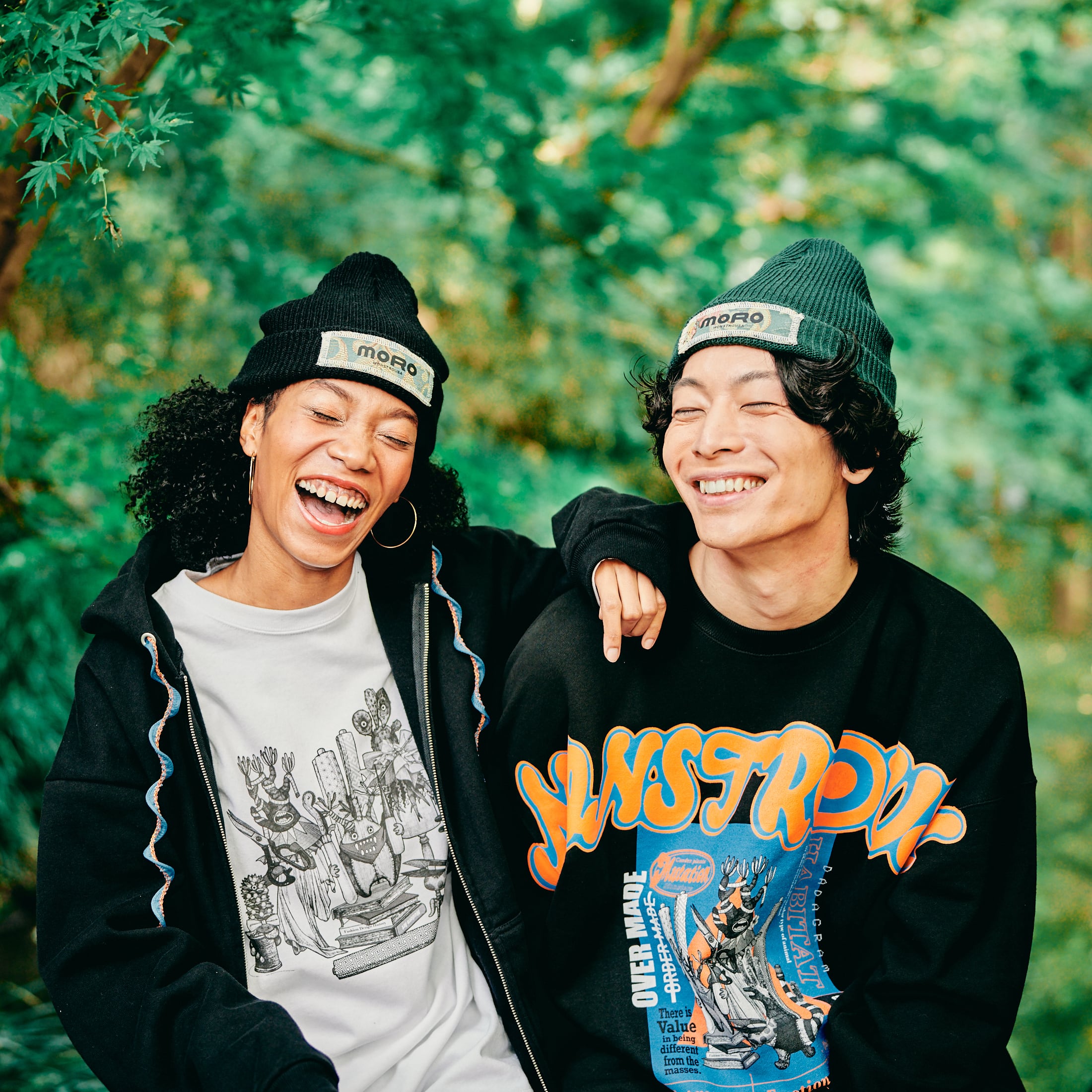 15onzの極厚生地に加え、裏起毛のジップアップパーカーは肌寒い季節に重宝するアイテムです。シンプルな黒パーカーの背面に身幅を超える超インパクトのアートを施しました。ブランドコンセプトの「OVER MADE」を象徴する大胆なデザインです。